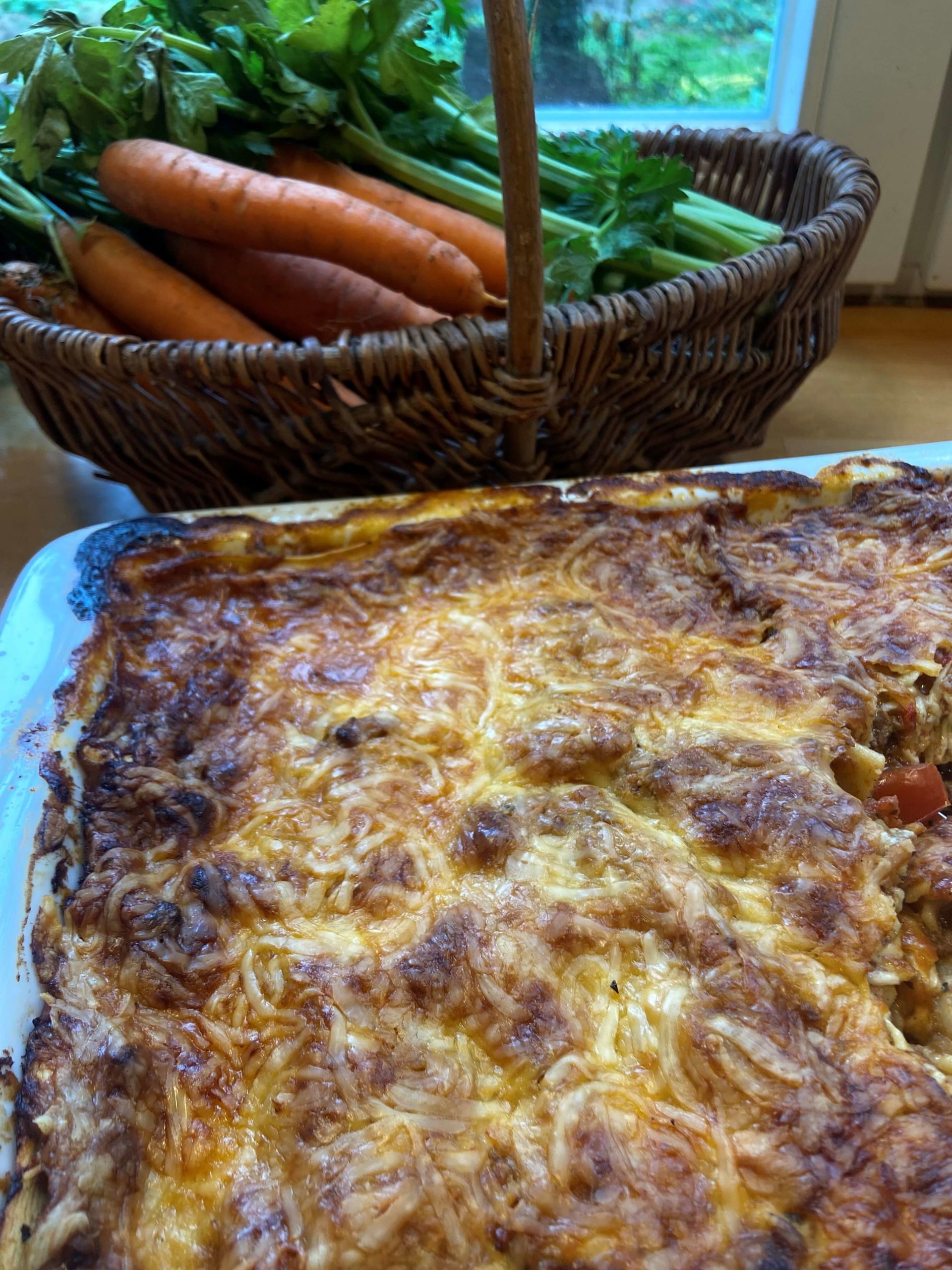 In der Auflaufform nun abwechselnd die Tomatensauce und Lasagneplatten schichten, die letzte Schicht ist die Bechamelsauce. Den Käse darauf verteilen und bei 170 Grad ca. 30 Minuten überbacken.